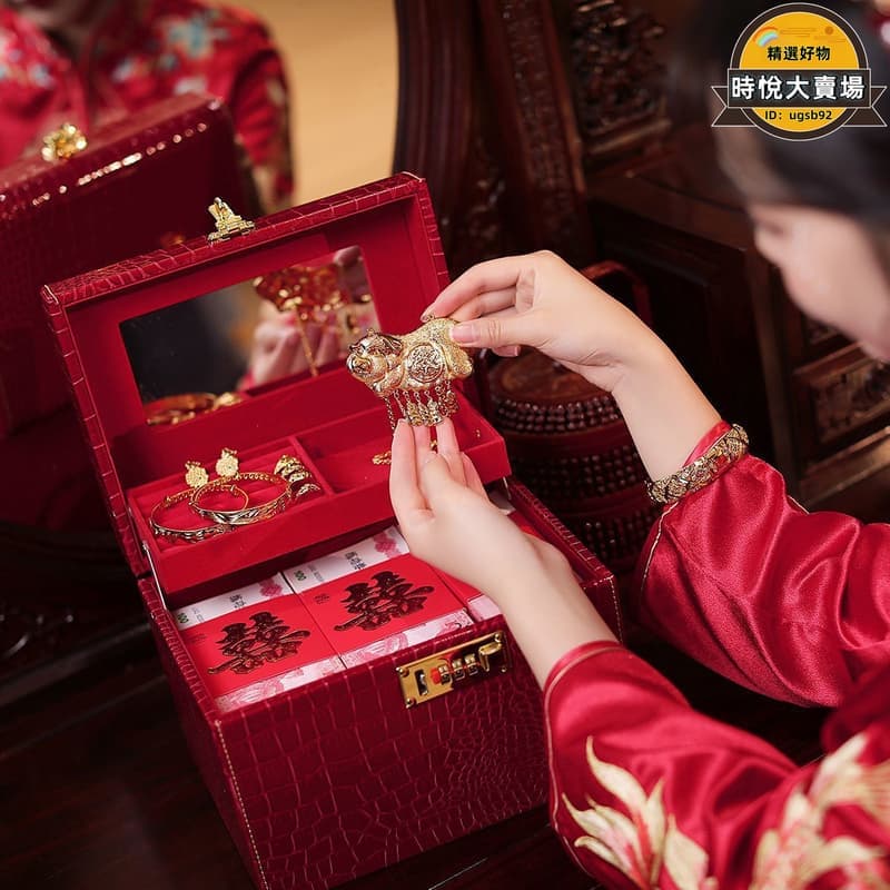 【五星好評】三金定親禮盒首飾盒提親聘金盒彩禮錢盒子訂婚禮金聘禮箱10萬結婚