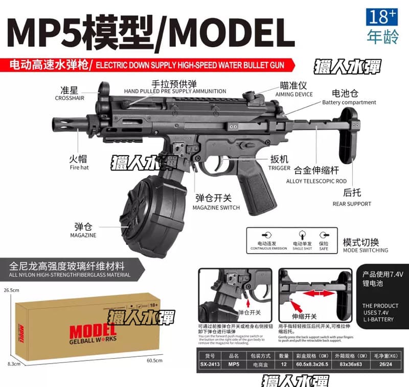 【獵人】順信MP5K現代版 電動水彈槍 自帶上旋 聯動回膛 高速射擊 電動水彈槍