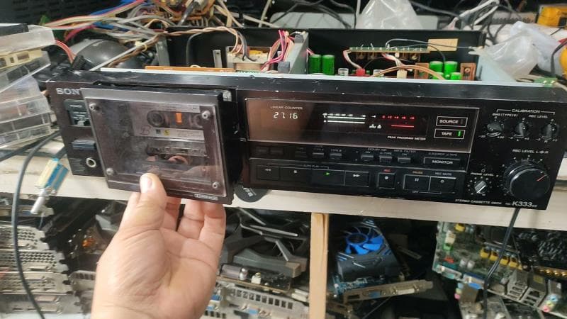 索尼TC-K333ES卡座,三磁頭,正常使用,倉門掉下來已經修好,機的小燈能看出來是後換的,電源線後換的進口線,售出該