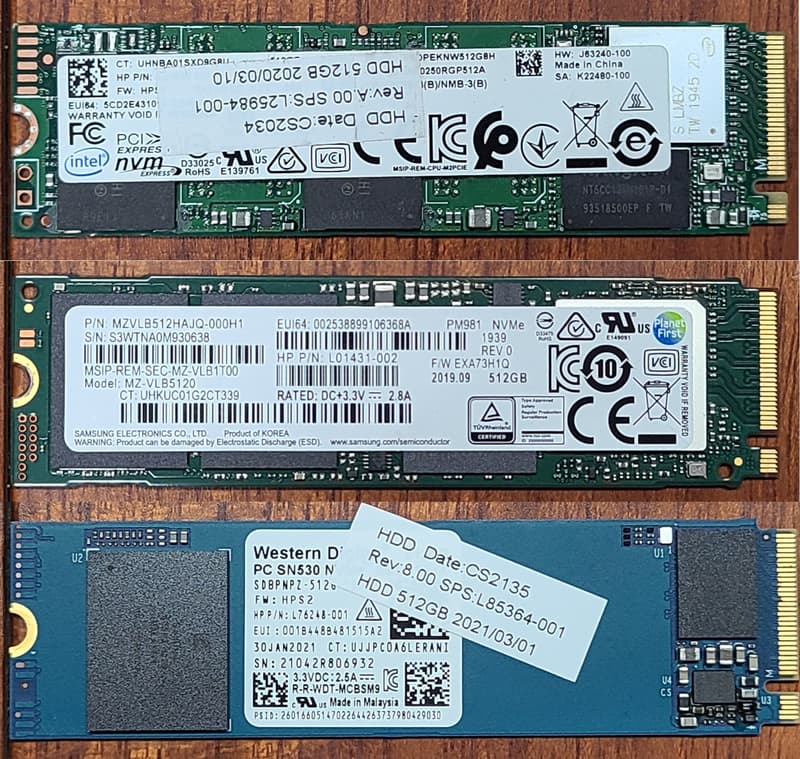 二手 M.2 NVMe PICe 512G SSD 固態硬碟 2280 Intel Samsung W.D