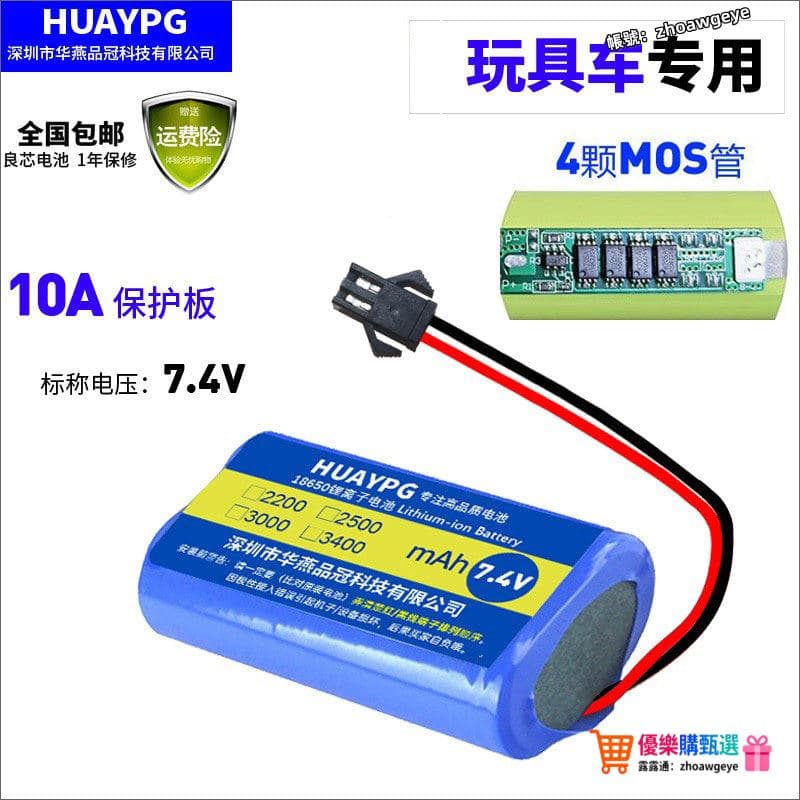 電動遙控玩具車電池7.4V動力吸塵器帶保護板SM插頭18650鋰電池組