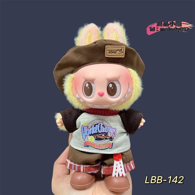 【臺灣現貨】17釐米labubu娃衣夏天新款豆乳坐坐派對搪拉布布背帶褲裝娃衣