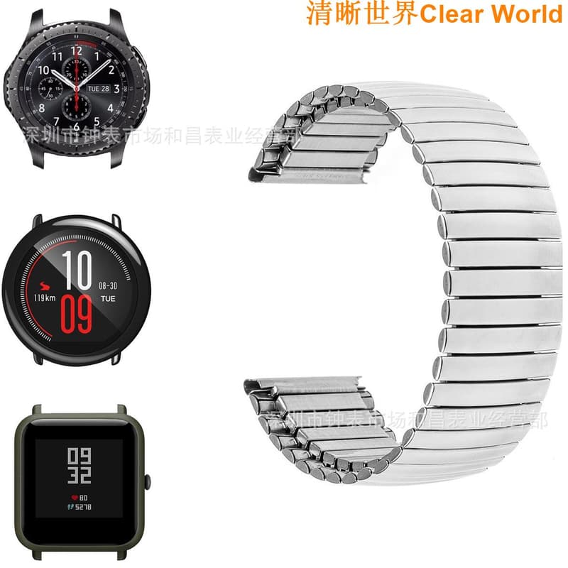 適用三星gear S3可伸縮錶帶AMAZFIT華米彈簧錶帶金屬彈力手錶帶