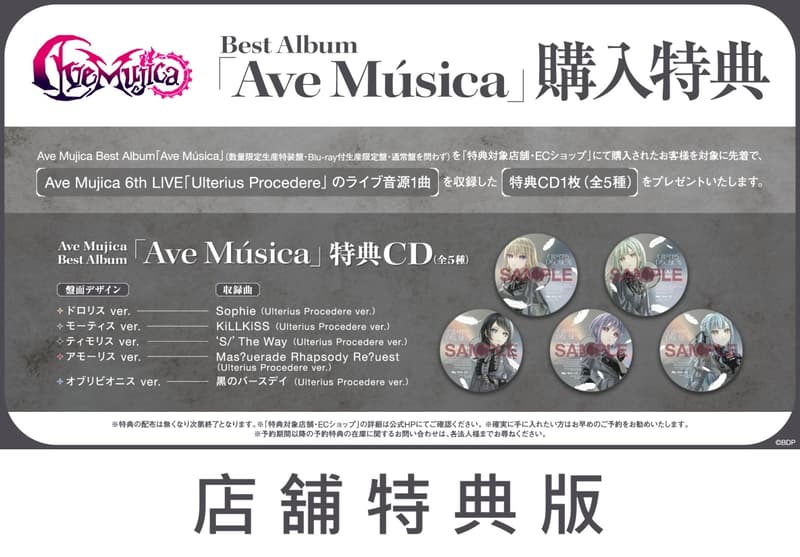 【通販代購】各店家特典版 Ave Mujica Best專輯「Ave Música」BanG Dream! 0515