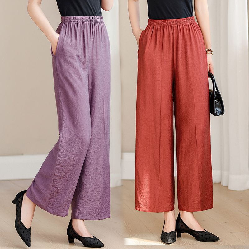 媽媽褲 中老年女褲 夏季薄款天絲棉高腰直筒闊腿九分褲 垂感透氣韓版休閒長褲 顯瘦百搭