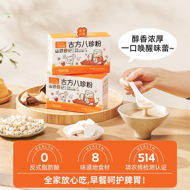 美食美客▶全場免運◀古方八珍粉健康營養即食早餐兒童老人鐵棍山藥脾胃猴頭菇陳皮養