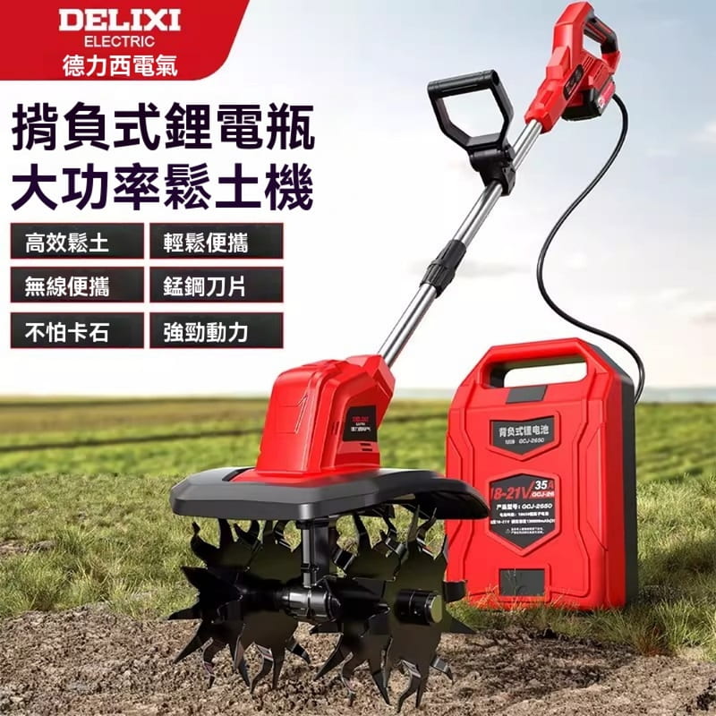 【PChome 24h購物】德力西 無刷電動鬆耕地機 園林無刷開荒續航王【30節15A背包電池一電一充】 R99N