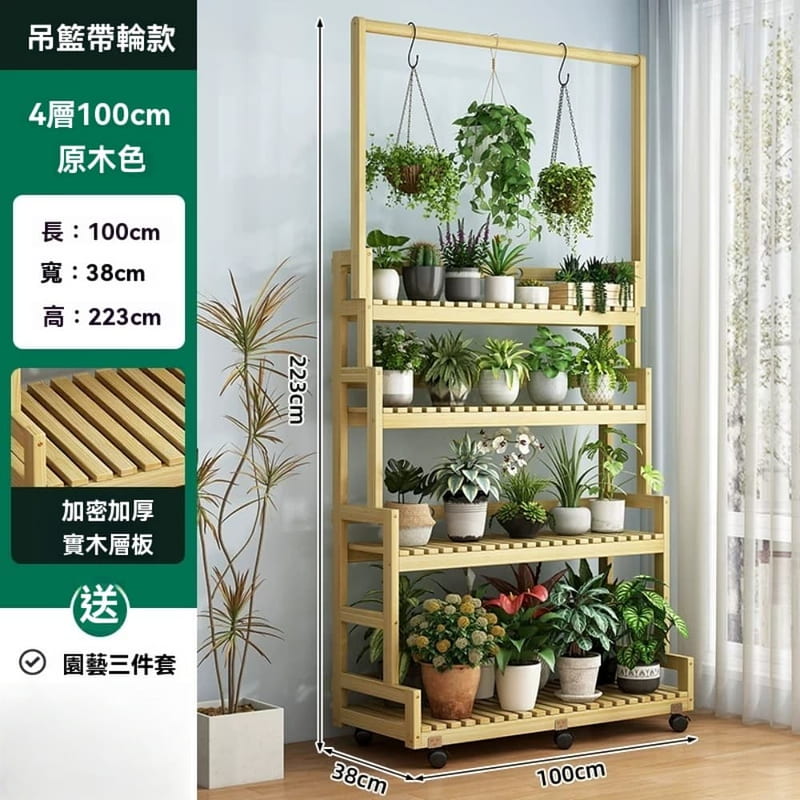 【PChome 24h購物】木質花架 陽台置物架 新款移動帶輪花架 客廳落地式花盆架 吊籃花架 落地花架 落地吊籃花架 R99N