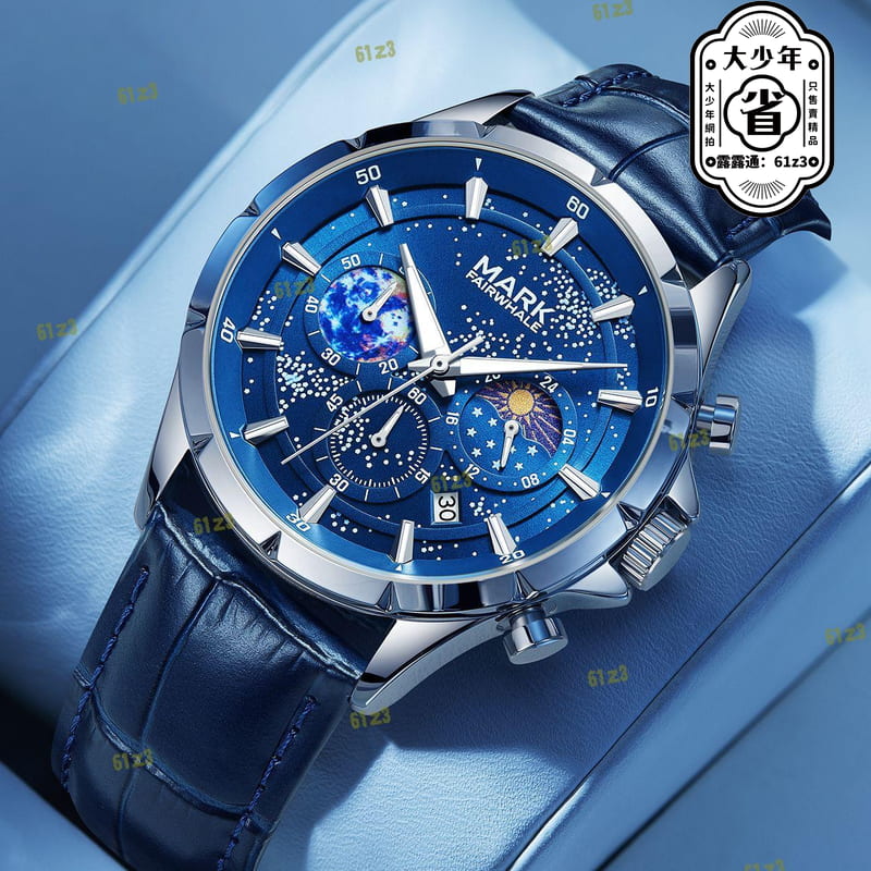 【品質認證】馬克華菲mark fairwhale手男品牌新款夜光星空防水爆款石英表