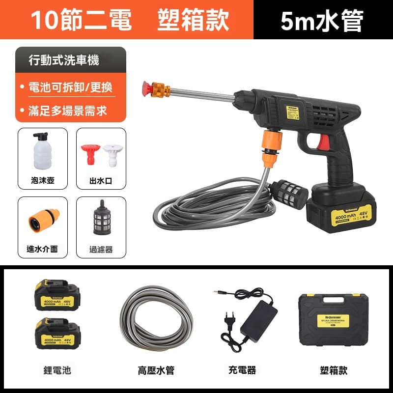 【PChome 24h購物】YIMI 依米 手持洗車機 10節二電+5m水管 無線清洗機 洗車槍 大功率洗車高壓水槍 鋰電充電式便攜澆水器 R99N