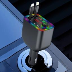 【PChome 24h購物】BASEE 車載MP3自帶伸縮線車充 車用數顯點煙器 汽車超級快充充電器 無損音頻音樂播放器 FM發射器 氛圍燈