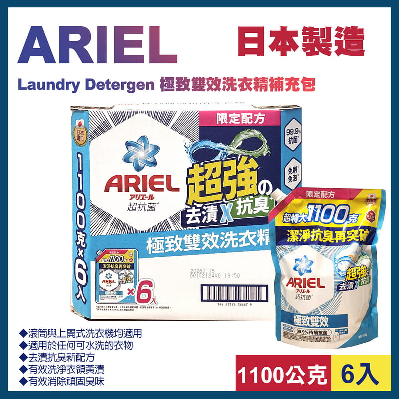 【PChome 24h購物】【Ariel】極致雙效洗衣精補充包1100公克X6入