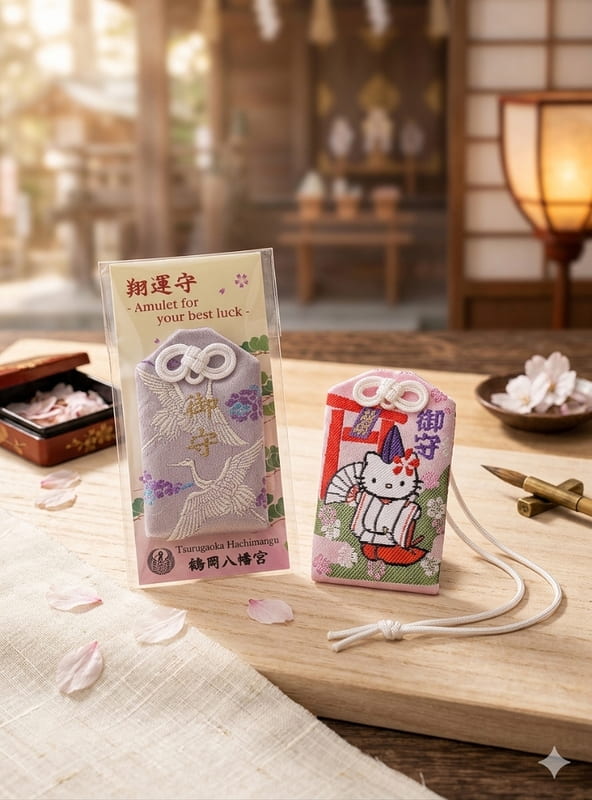 ​【鎌倉必買】⛩️鶴岡八幡宮御守【翔運守-絕美仙鶴款​】​【全能總守-超萌聯名 ‧ Hello Kitty 巫女】祈福幸