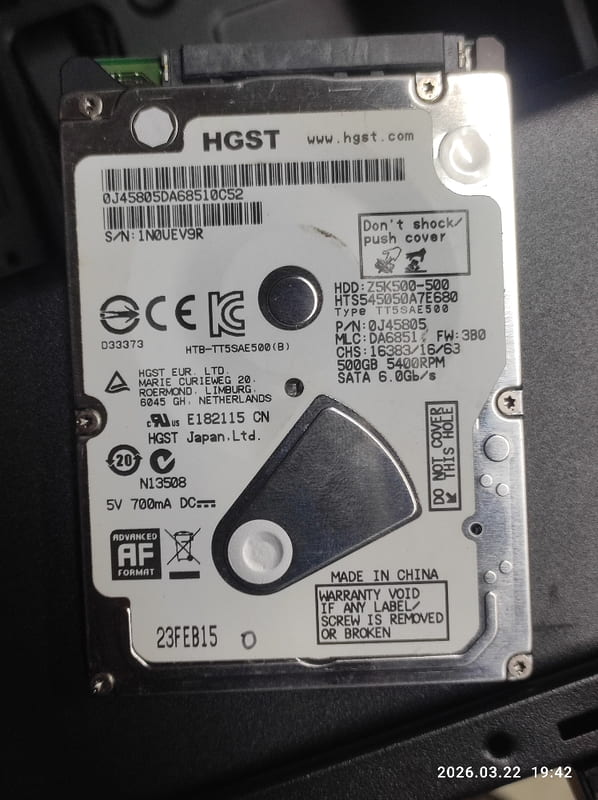 賣二手良品少用昱科環球HGST 500GB 2.5吋 SATAIII 筆電硬碟型號 (HTS545050A7E680)