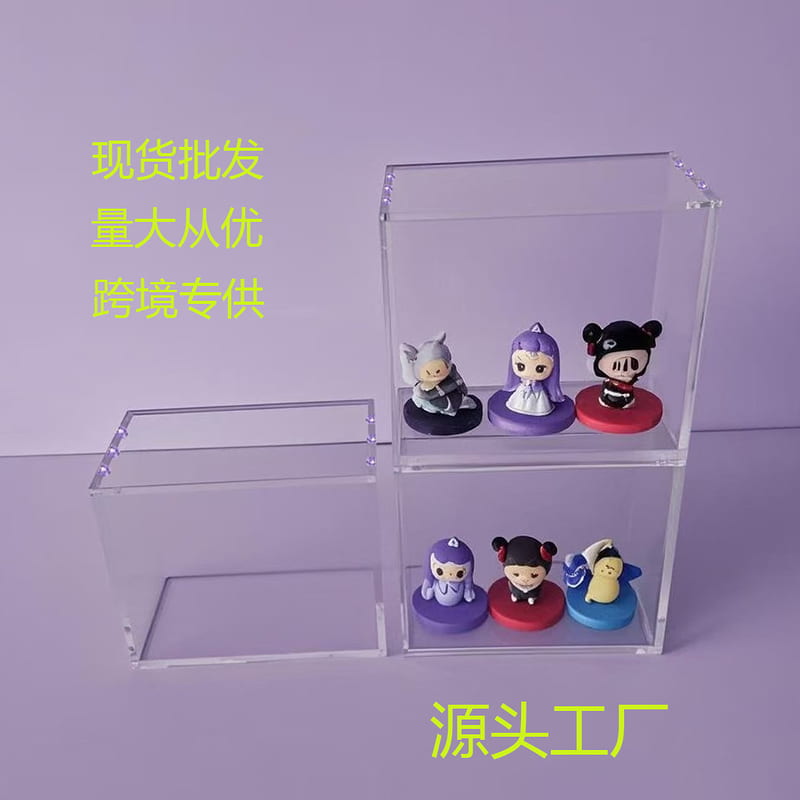 拉布布防塵有蓋可疊加亞克力手辦盒展示盒妖怪遊戲卡收納盒批發