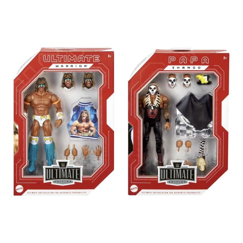 (實物實派)美泰WWE摔跤手92年經典對決雙人盒巫毒法師Papa與Shango終極戰士運輸盒位釵風.Y