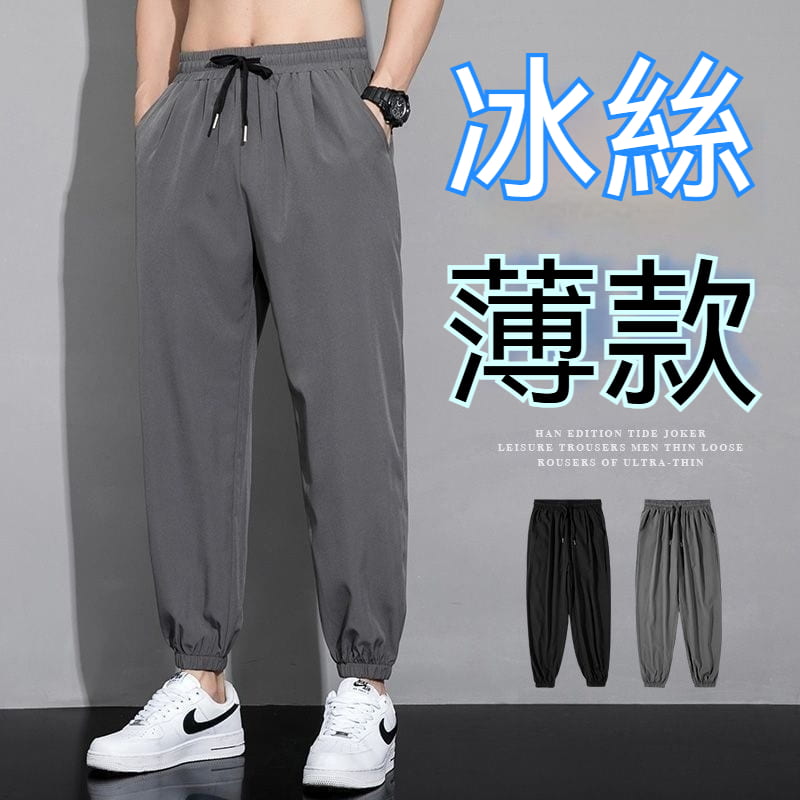 【現貨】夏季冰絲涼感休閒長褲 百搭薄款 運動寬松 新款速幹 運動直筒 潮流透氣百搭休閑褲 冰絲褲 涼感褲 速乾褲 運動長