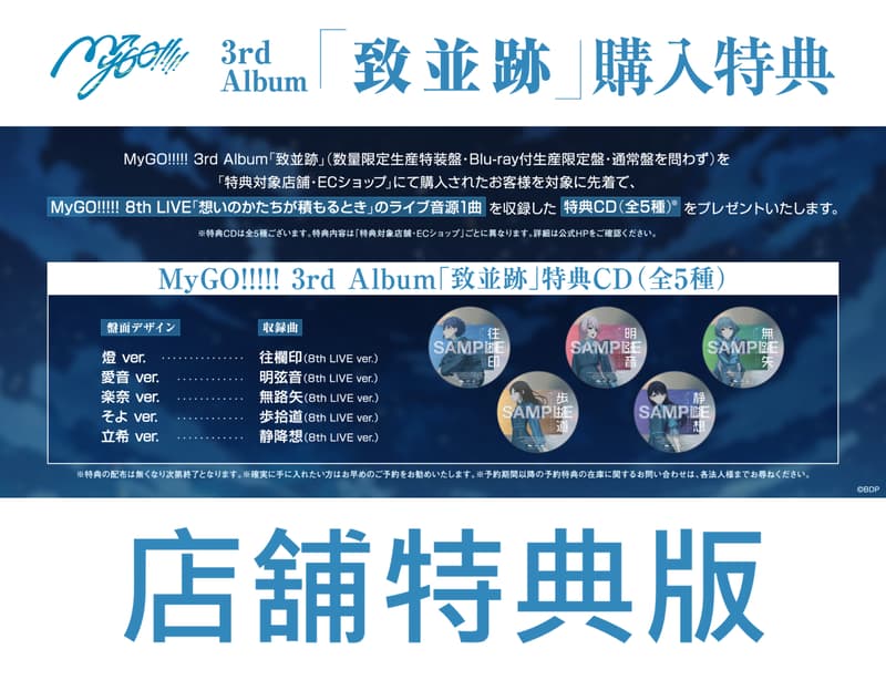 【通販代購】各店家特典版 MyGO!!!!! 3rd 專輯「致並跡」BanG Dream! 0612