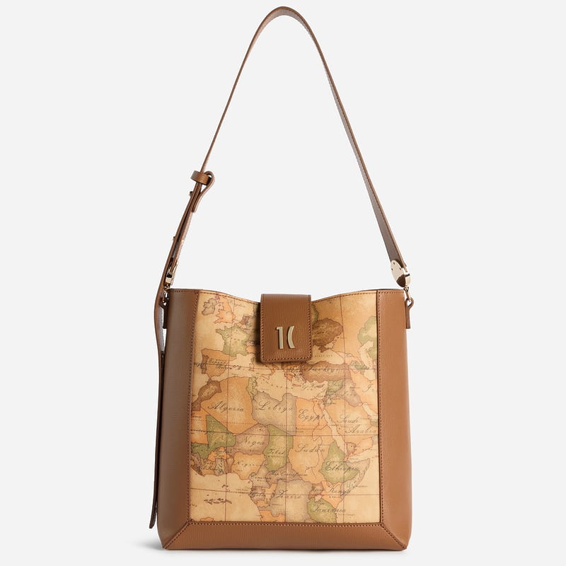 【PChome 24h購物】【Alviero Martini 義大利地圖包】直式水桶釦式肩揹包25cm-地圖黃x咖啡色 R99N