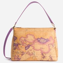 【PChome 24h購物】【Alviero Martini 義大利地圖包】渲染地圖拉鍊手提側揹包32cm-地圖黃x紫色 R99N