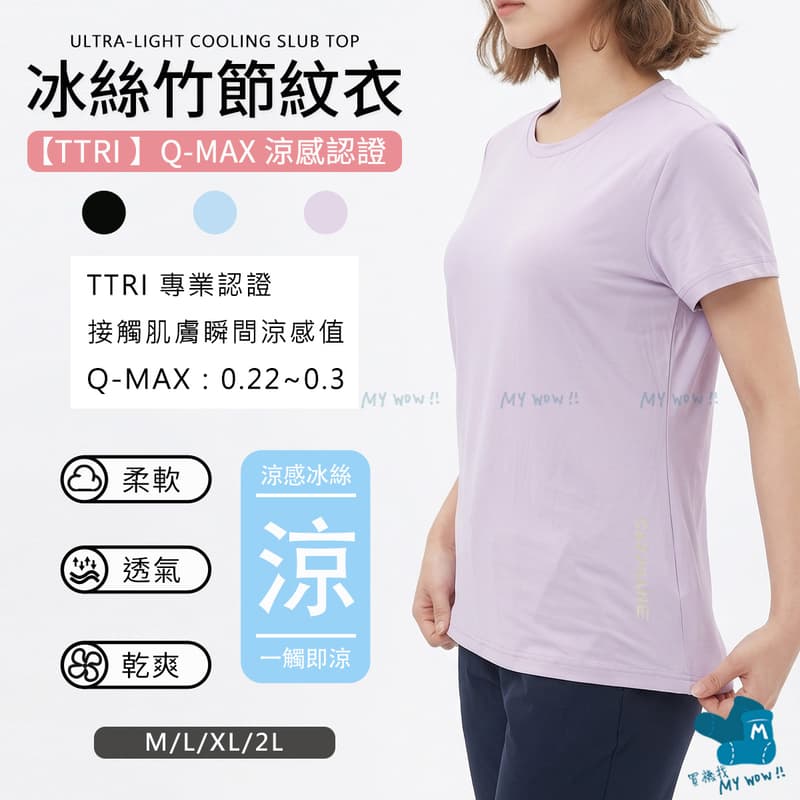極輕量竹節紋冰絲涼感衣 排汗衫 M-2L 彈性顯瘦上衣 輕薄透氣 吸濕排汗 女短袖上衣 運動衣 涼感杉 FQ2-871