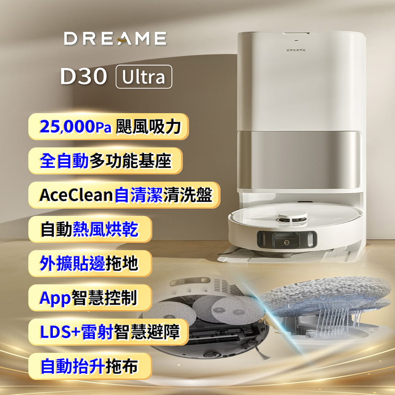 【PChome 24h購物】【Dreame 追覓科技】D30 Ultra 掃拖機器人(25000Pa 颶風吸力/自動熱風烘乾/LDS雷射智慧避障) R99N