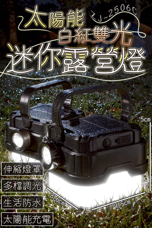 太陽能迷你露營燈 太陽能露營燈手電筒 太陽能/充電兩用 白紅雙光 多段調整 伸縮燈罩