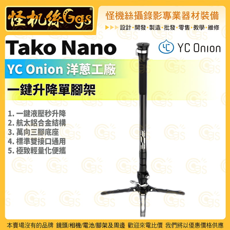 怪機絲【 YC Onion 洋蔥工廠 Tako Nano 一鍵升降單腳架 】