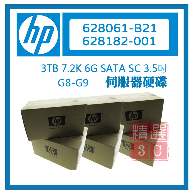 全新盒裝 HP 628061-B21 628182-001 3TB 3.5吋 6G G8-G9 SATA SC 7.2K