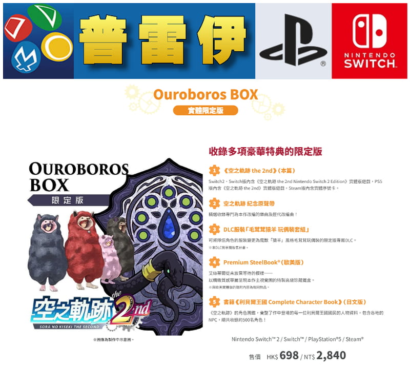 【普雷伊-三峽北大】預購免運★附特典【PS5/NS2(相容NS1代主機) 空之軌跡 the 2nd 中文限定版】9/17