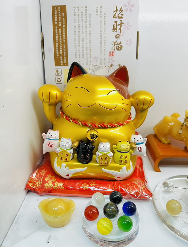 金色招財貓 存錢筒 象徵財運亨通與事業成功 六隻小貓 象徵「福氣滿門」金色大貓 招財招福的最佳代表 催旺財氣與開拓商機