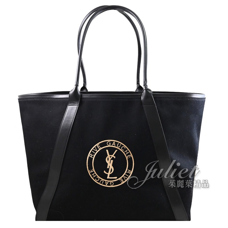 YSL 780096 Rive Gauche 電繡圓標LOGO帆布商旅托特包.黑 現金價$29,800