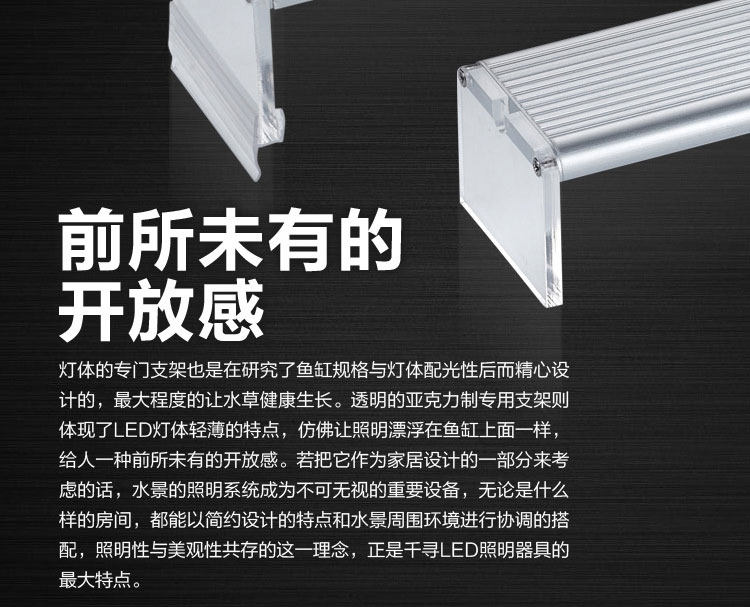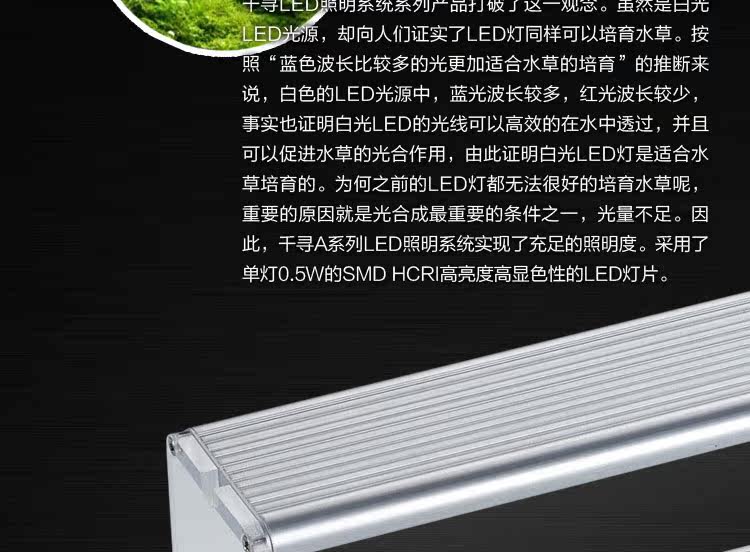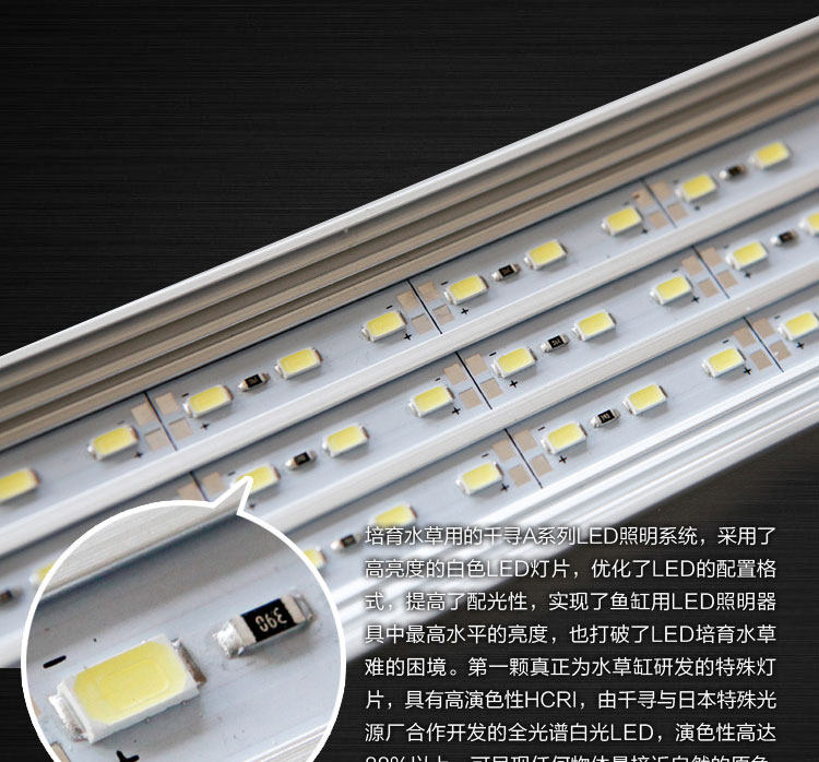 特性簡介: 1.提供水族箱生態之專業照明,水草色彩更加豔麗。 2.採用低電壓節能LED燈,使用上更安全、更節能省電。 3.專為水草缸設計,提供最佳的照明,以利水生植物生長光合作用更旺盛。 4.發光效率高,光線集中,不含水銀等重金屬,低污染。 5.燈架為高透明壓克力,整體更美觀。 6.燈具為鋁合金材質,散熱效果優良。 7.加贈8段式有線調光器,可隨意調整光源度量。 8.記憶式光源,關閉後再開啟會自動紀錄上一次的光度,免再進行調整。 |