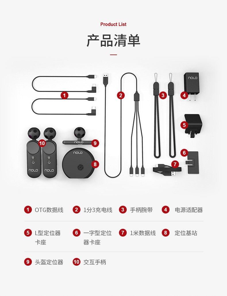 Nolo套件產品內容(以原廠最新資料為準):包含 1 個定位基站、1 個頭盔定位器及 2 個互動手把。送4米線
