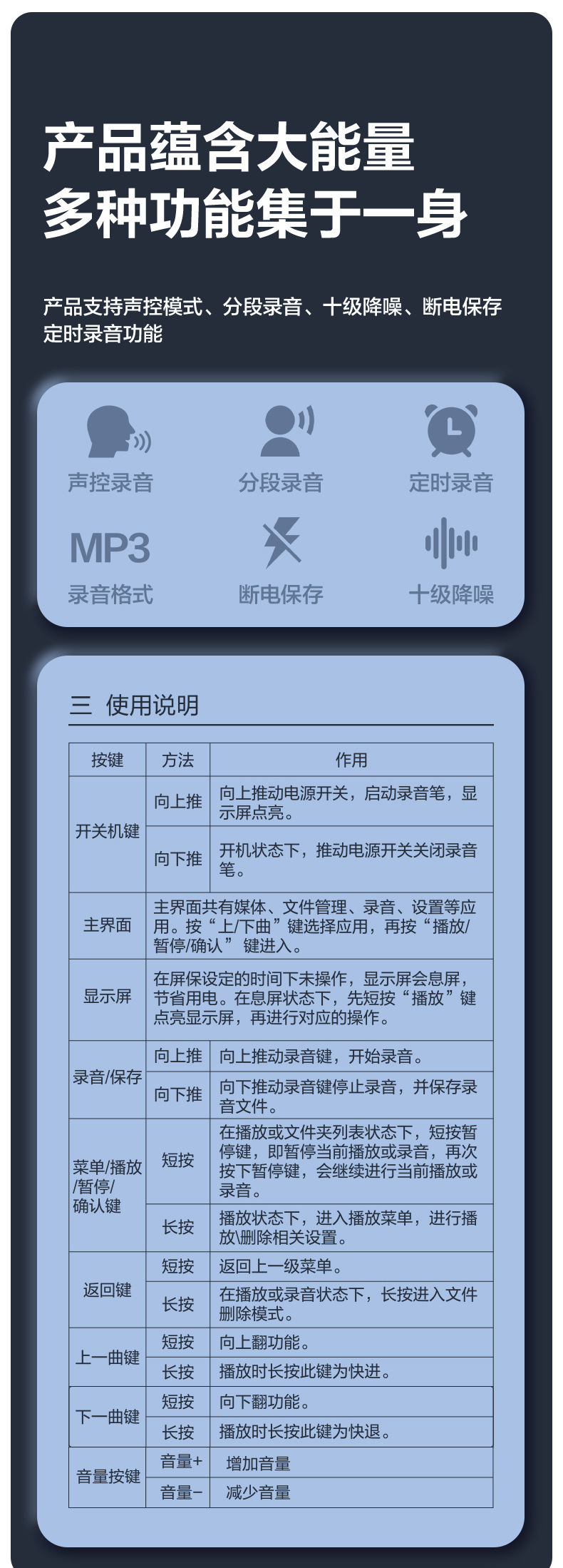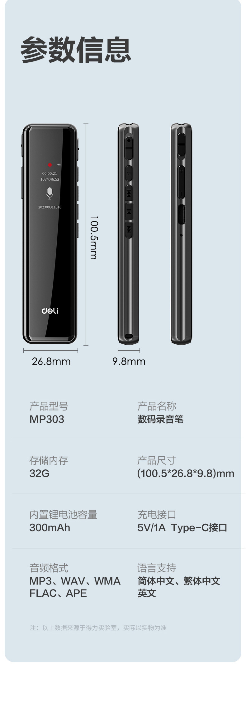 🏆容量 : MP301數碼錄音筆-8G(黑)