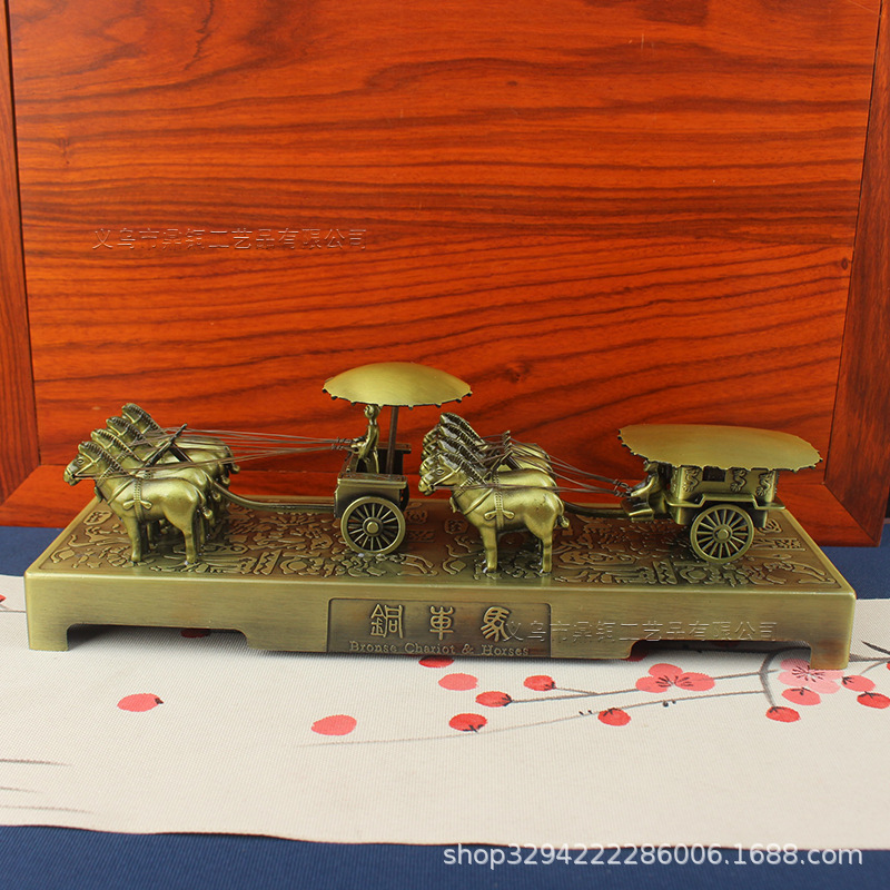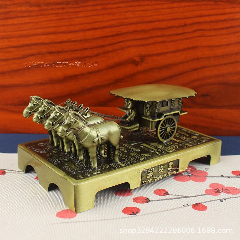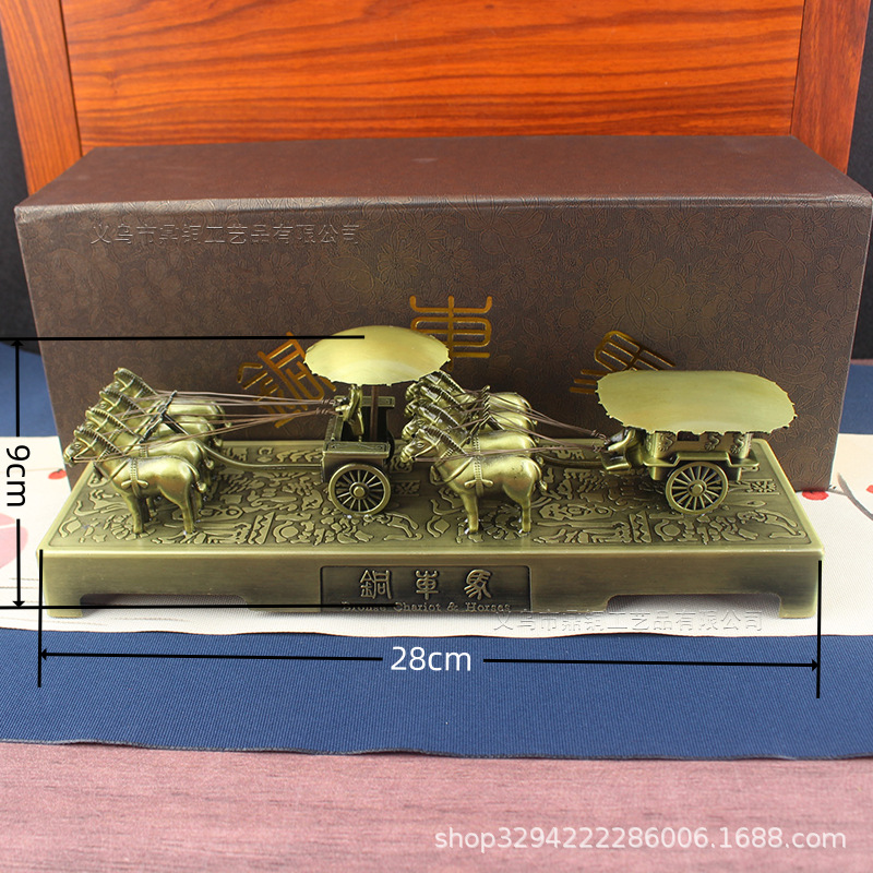 下圖為【規格:四匹馬 方頂銅車馬擺件(合金)】圖片